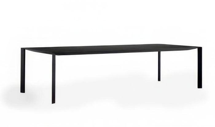 Akashi is an extendable table with a four-leg base and a lacquered metal structure. The fixed version is available with a top in veneered wood, Fenix, laminate, ceramic, MDF, or glass (140x140 size not available in crystalceramic). The extendable version comes with a top in veneered wood, Fenix, MDF, or laminate, featuring extensions that match the top and open with a semi-automatic folding mechanism. When configured with a ceramic or glass top, Akashi is suitable for outdoor use.