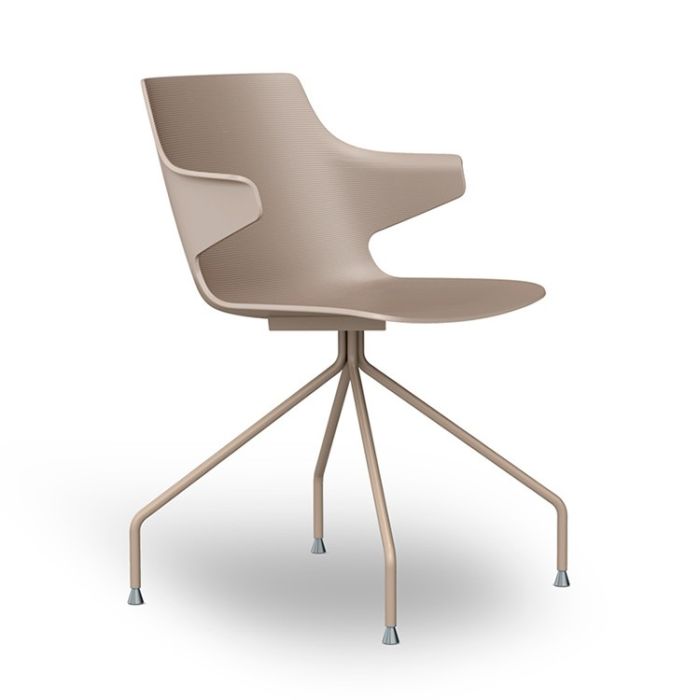 Indoor chair with spider arms, featuring a housing made from injected fiberglass and polypropylene (PP). It has a painted steel structure.
