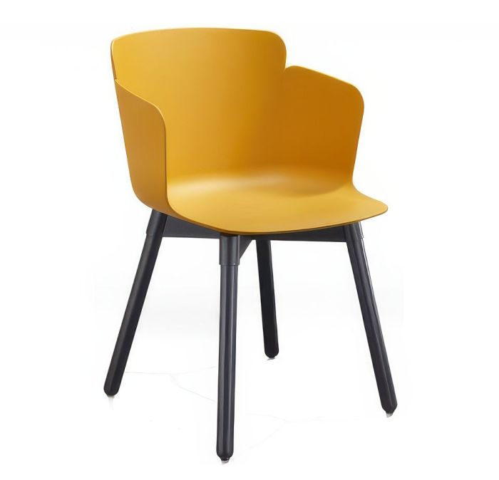 Calla armchair featuring a four-legged wooden base and a polypropylene shell.