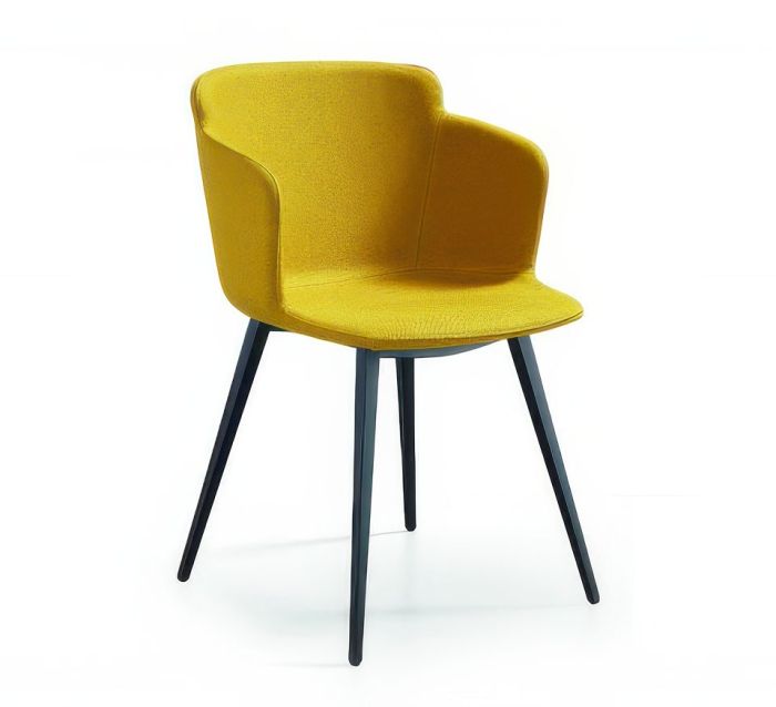 Calla armchair featuring a four-legged metal base with a seat upholstered in leather, faux leather, or fabric.