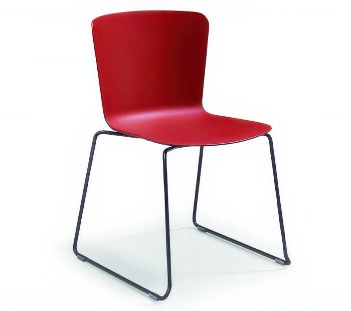 Calla stackable chair featuring a sled metal base and a polypropylene seat.