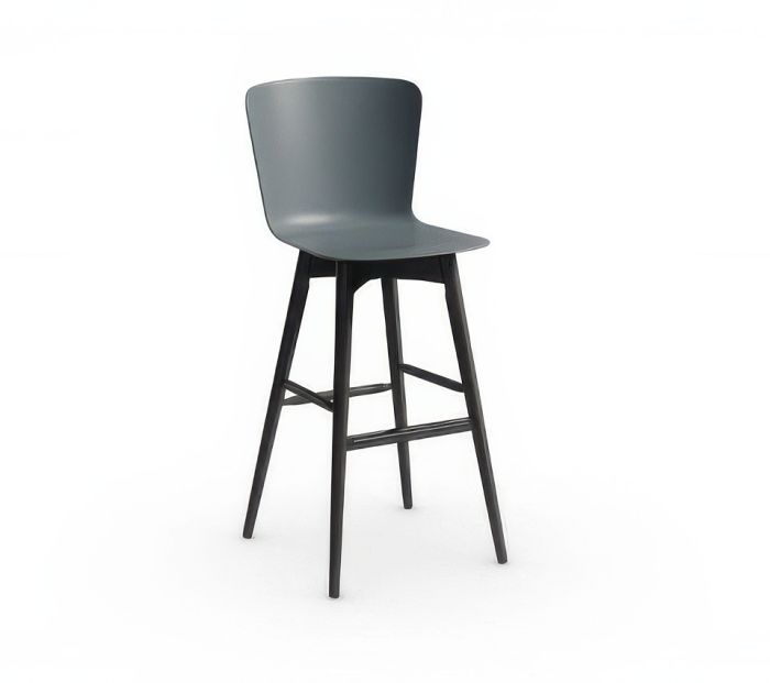 Fixed Calla stool featuring a lacquered ash wood base and a polypropylene seat. Also available in the H65 version.
