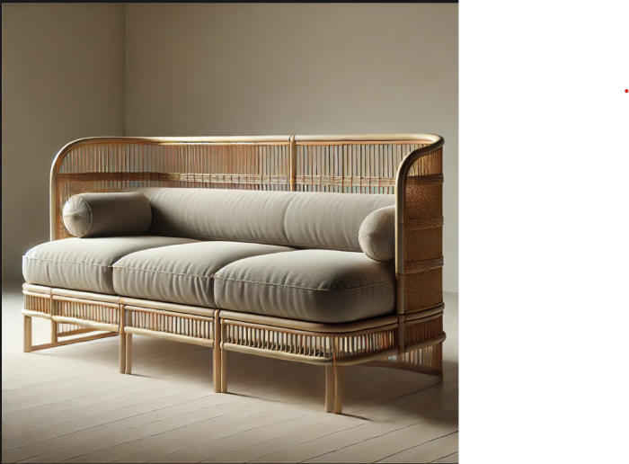 - Design Features: Organic shape, curved backrest, intricate woven detailing, bolster pillows