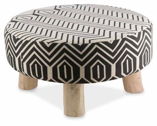 Croydon Cotton Printed Large Ottoman with Natural Wood Legs