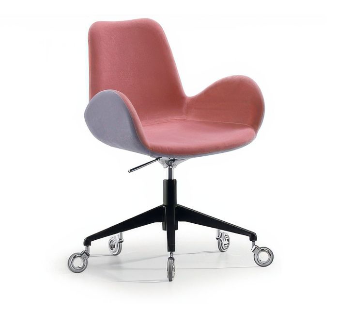 Dalia office armchair with a swivel and height-adjustable design, featuring a low backrest and a five-star base in lacquered metal. The shell is upholstered in leather, faux leather, or fabric.