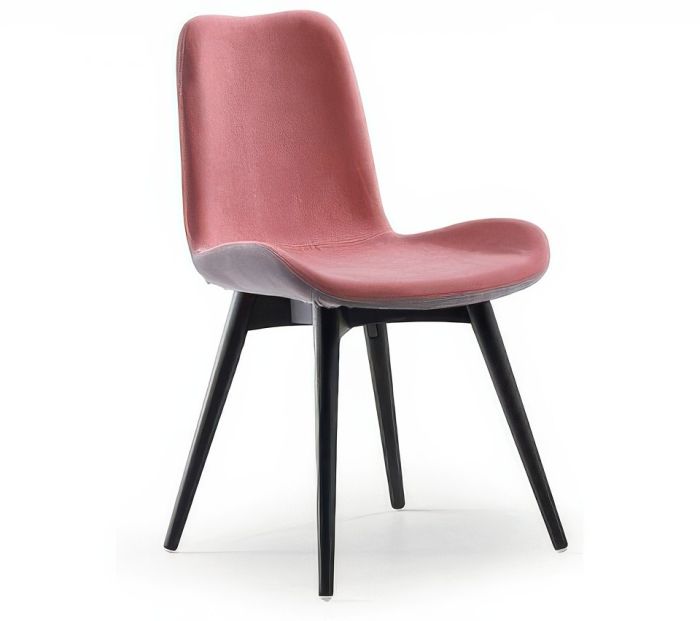 Dalia chair with a four-leg wooden base, featuring an upholstered shell in leather, faux leather, or custom fabric.
