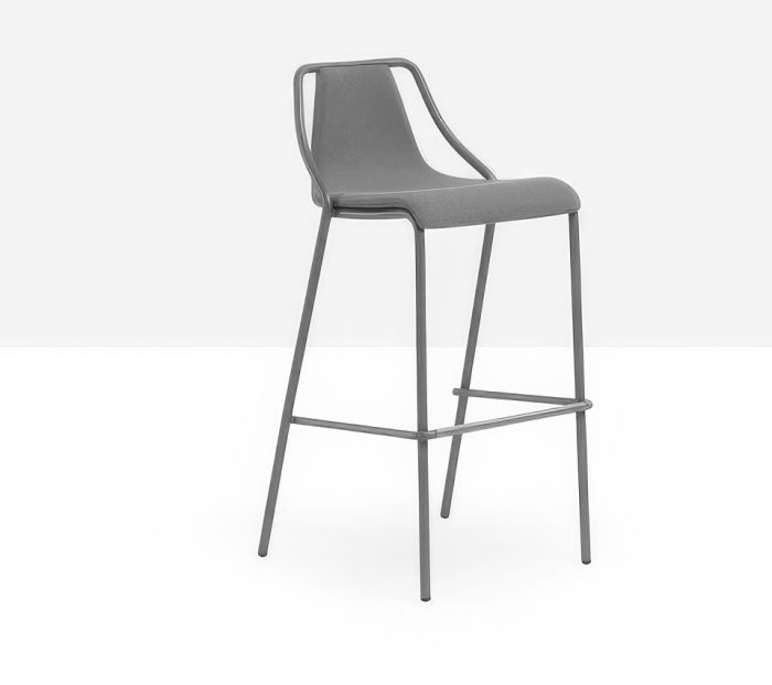 Ola stool with a lacquered metal frame, available in leather, faux leather, or fabric upholstery.