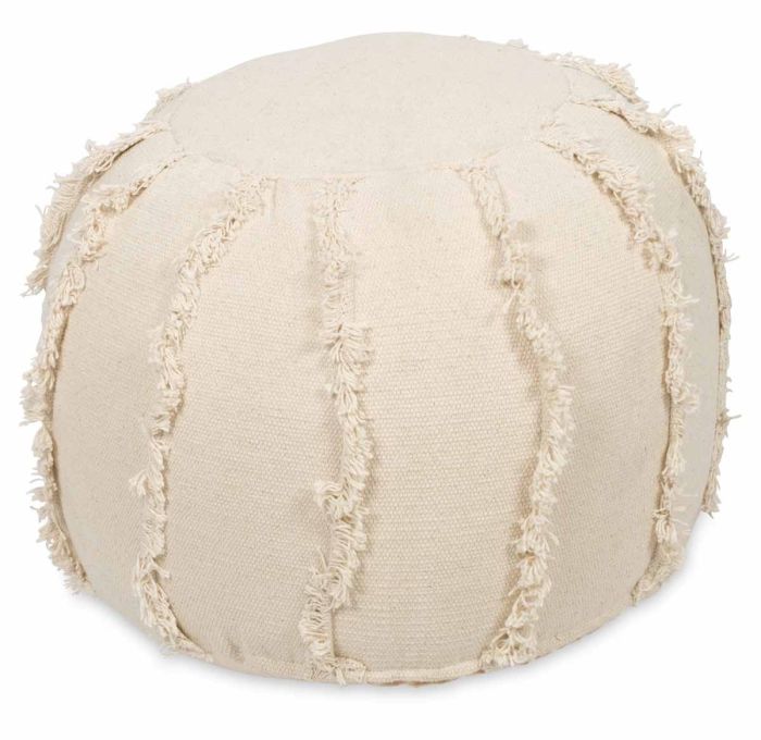 Kitson Round Hand Woven Stone Wash Cotton Ottoman with Thermocol Bean Filler