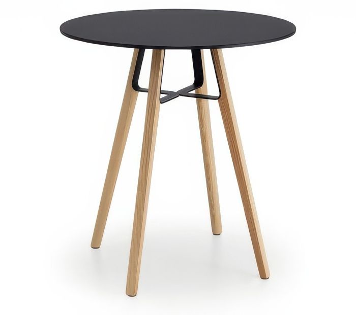 Liù bistrò table with a four-leg base in wood and metal inserts. Accommodates round and square tops in sizes ø60 cm, ø70 cm, ø80 cm; 60x60 cm, 70x70 cm, 80x80 cm (ø23.6, ø27.6, ø31.5 in; 23.6x23.6, 27.6x27.6, 31.5x31.5 in).