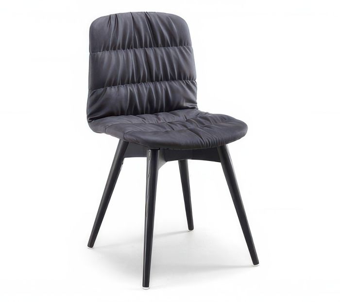 Liù chair featuring a four-legged wooden base. The shell is upholstered in leather, faux leather, or fabric.
