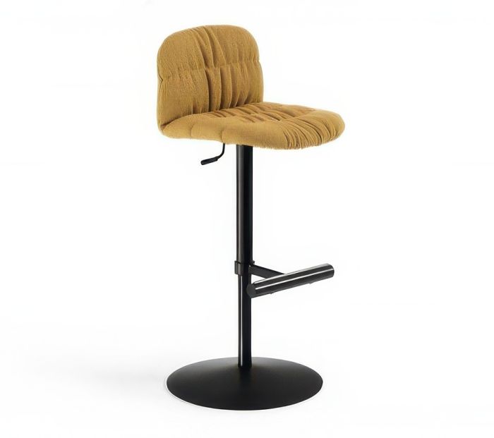 Liù swivel stool with height adjustability, featuring a metal base and seating upholstered in fabric, leather, or faux leather.