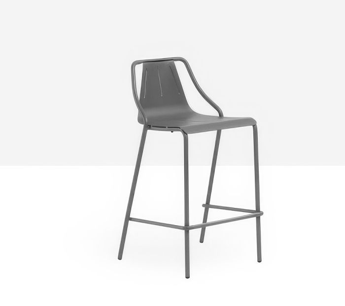 Ola stool with a lacquered metal frame and shell, suitable for outdoor use in the stainless steel version.