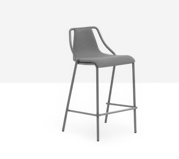 Ola stool with a lacquered metal frame, available with upholstery in leather, faux leather, or fabric.
