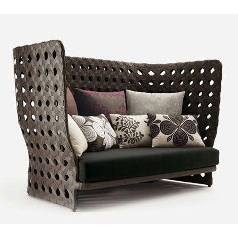 The Pau Rattan Lounge is made of a lightweight aluminium frame covered in polypropylene rattan. It has a removable upholstered seat cushion, back pillows and additional throw pillows for comfort. Ideal for hotels and restaurants.