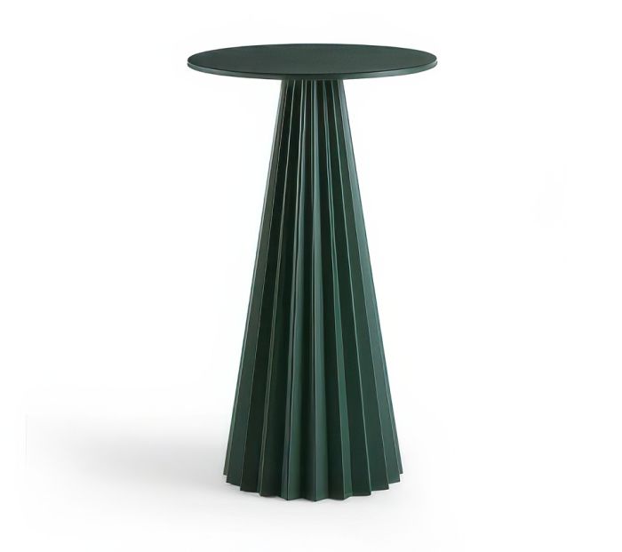 The Plissé bistrò base, made from lacquered metal, is suitable for both indoor and outdoor settings and is designed to complement round tabletops.