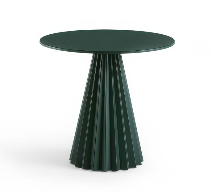 Plissé bistrò base, crafted from lacquered metal, is designed for both indoor and outdoor use and pairs beautifully with round tabletops. The Plissé collection, created in collaboration with Paola Navone, features tables with a sculptural and elegant design that also feels light and casual. With a touch of irony, Plissé pays tribute to the world of fashion, drawing inspiration from the iconic pleated styles that were popular in the 1950s and 60s and continue to influence trends today.