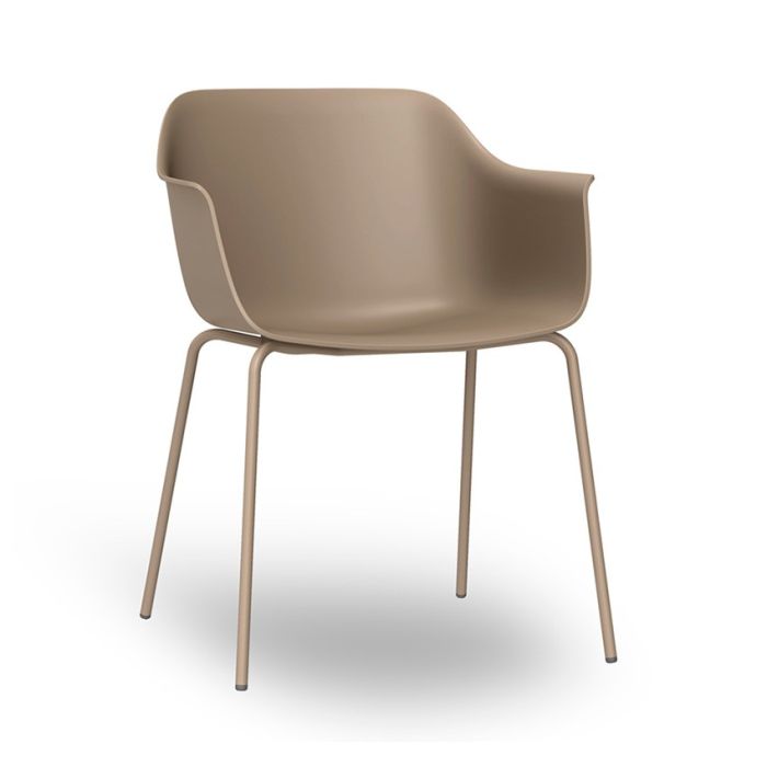 Indoor armchair featuring a seat crafted from injected polypropylene and fiberglass. It includes a structure made of painted steel, with the seat and structure matching in color.