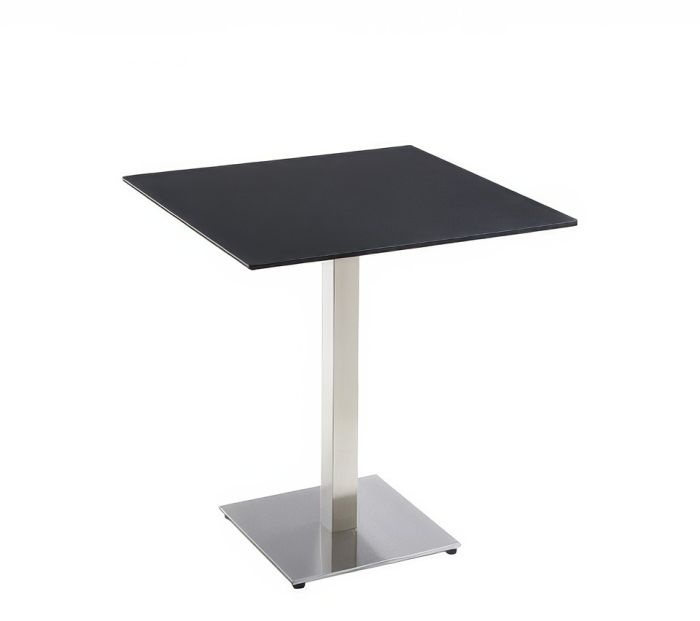 Elegant bistro table with a square base available in satin stainless steel, or painted in white or black. The top comes in melamine, HPL, or glass, with options for round or square shapes. The version with an HPL top is suitable for outdoor use. The table is offered in two height options: 73 cm (28.7") and 107 cm (42.1"). Top sizes: Smart 1 base 39 h73: ø60, ø70, ø80, 60x60, 70x70 Smart 1 base 48 h73: ø80, ø90, 70x70, 80x80