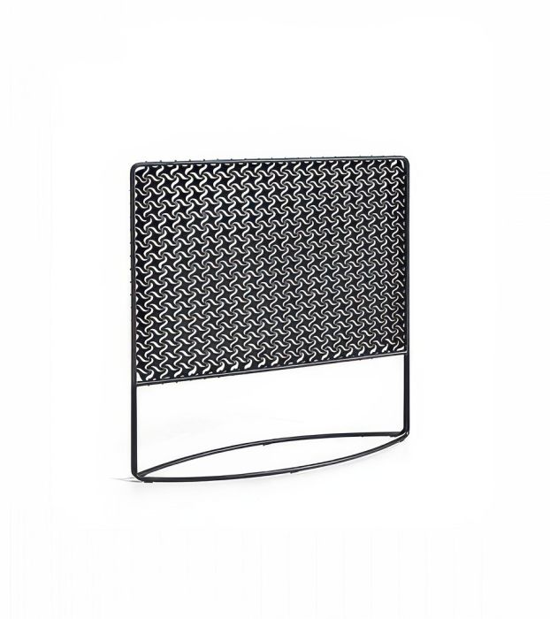 The Sunrise room divider features a metal frame paired with a mesh made of hide or Tuscan hide.