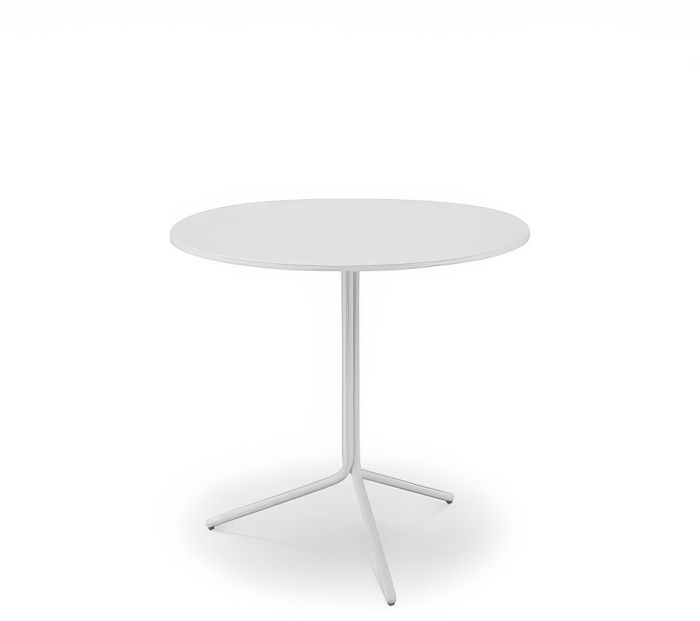 The Trampoliere table features a three-leg metal base and is suitable for outdoor use.