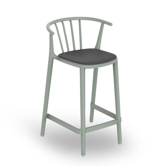 Stool suitable for both indoor and outdoor use, constructed from fiberglass-reinforced polypropylene with UV protection. Includes quick-drying foam and upholstery appropriate for indoor and outdoor settings, with a fabric weight of 275 g/m².