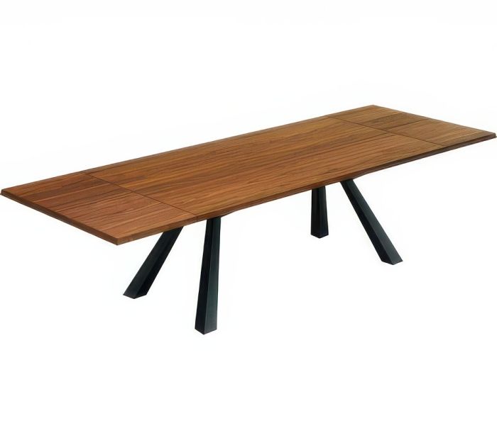 Zeus extendable table with lacquered metal frame. Top and extensions available in veneered wood.